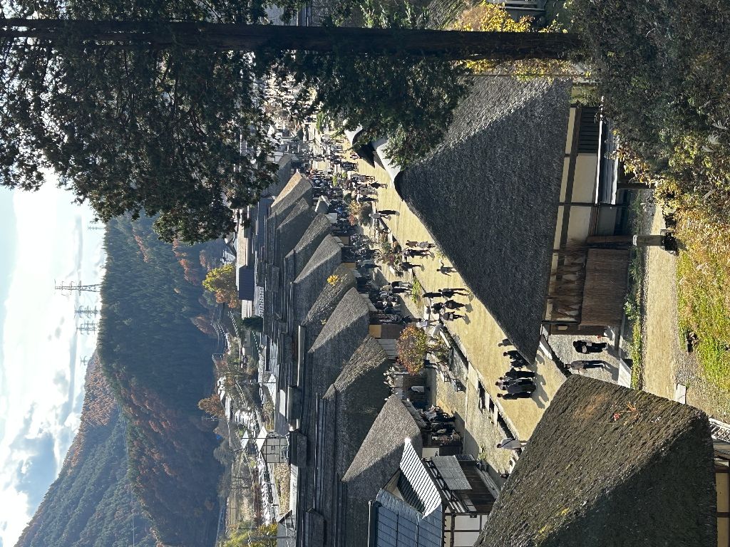 ◇2024年11月17日◇大内宿◇塔のへつりから車で30分の所にある大内宿にも行きました。私は初めて訪れました。ここは茅葺屋根の民家が江戸時代の面影を残したまま建ち並んで保存されている全国的にも有名な観光地です。同じ福島県内にあっても福島市から、かなり遠いイメージがあり、なかなか行く気にはなれなかったのです。紅葉が綺麗な時期でした。大内宿に入ると、まずは三澤屋で昼食を予約して見晴台に向かいました。私は観光案内にあるような大内宿の全景を眺めたかったのです。(続く)クリックしていただけますと嬉しいです!