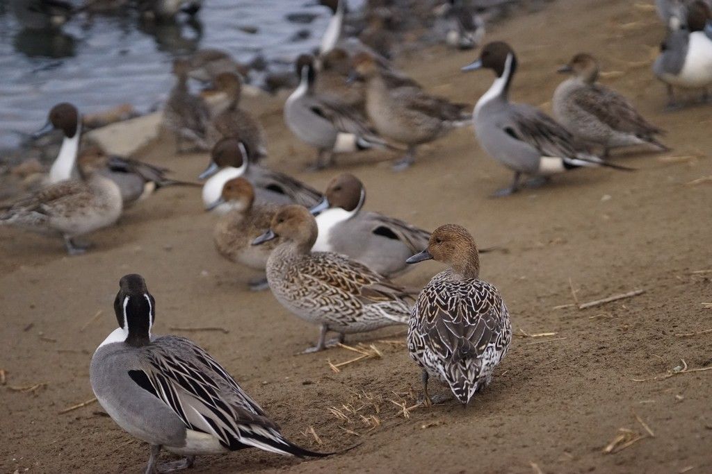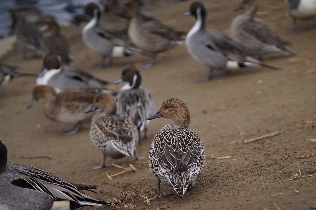 オナガガモたちの目線の先は、だいたい餌かな・・・