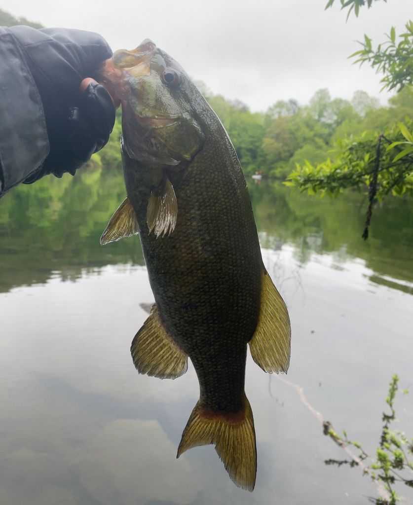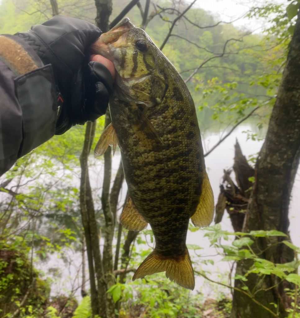 元気の良いスモールマウスバスでした。スポーニングエリアを守っているバスだったら可愛そうなので、ダメージを与えないように早く放すのだとか。
