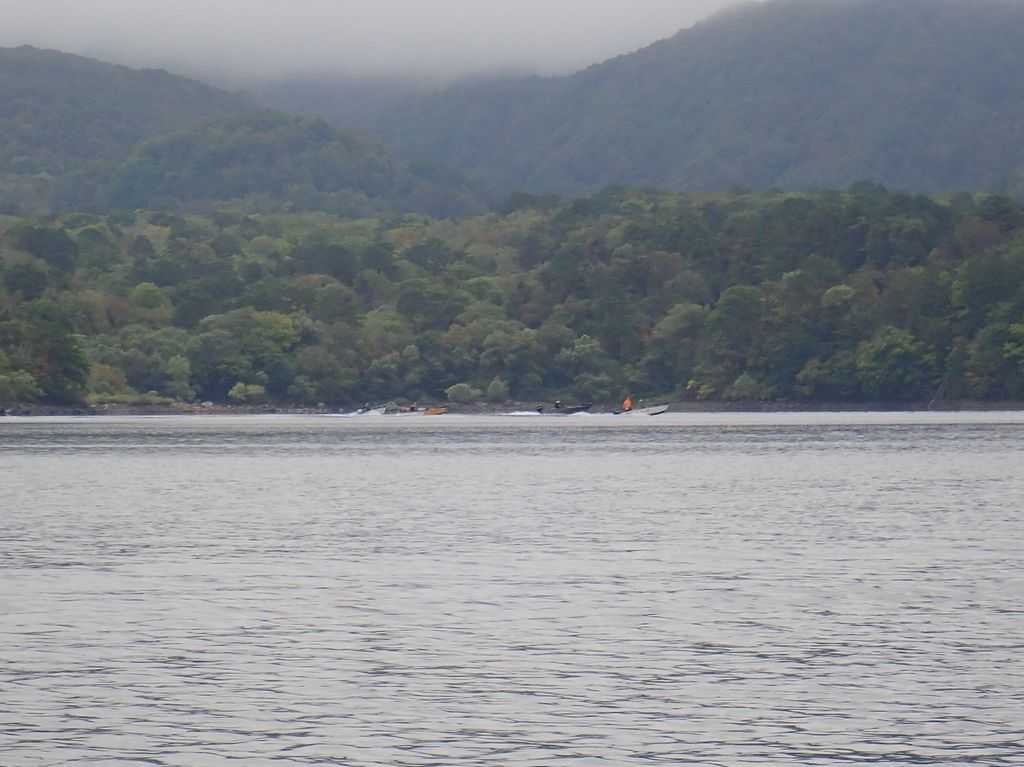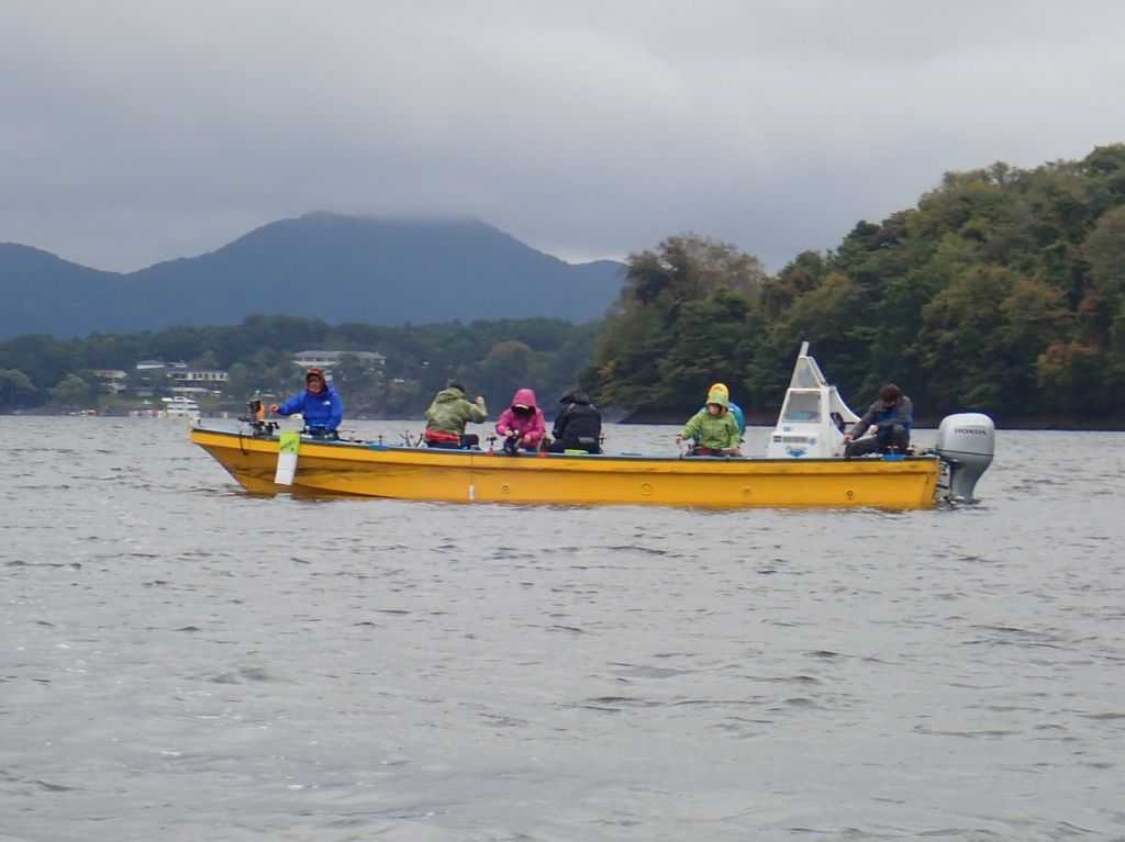 ボート店オーナーの案内で釣り場に入りましたが、そこでは魚の反応はありませんでした。ダウンベストの上にアウターを着て、さらにレインポンチョを着ても寒いほど冷え込んだ一日で、釣れないので余計に寒さが体に堪えます。私は今季初めて使い捨てカイロを使うことになったのです。