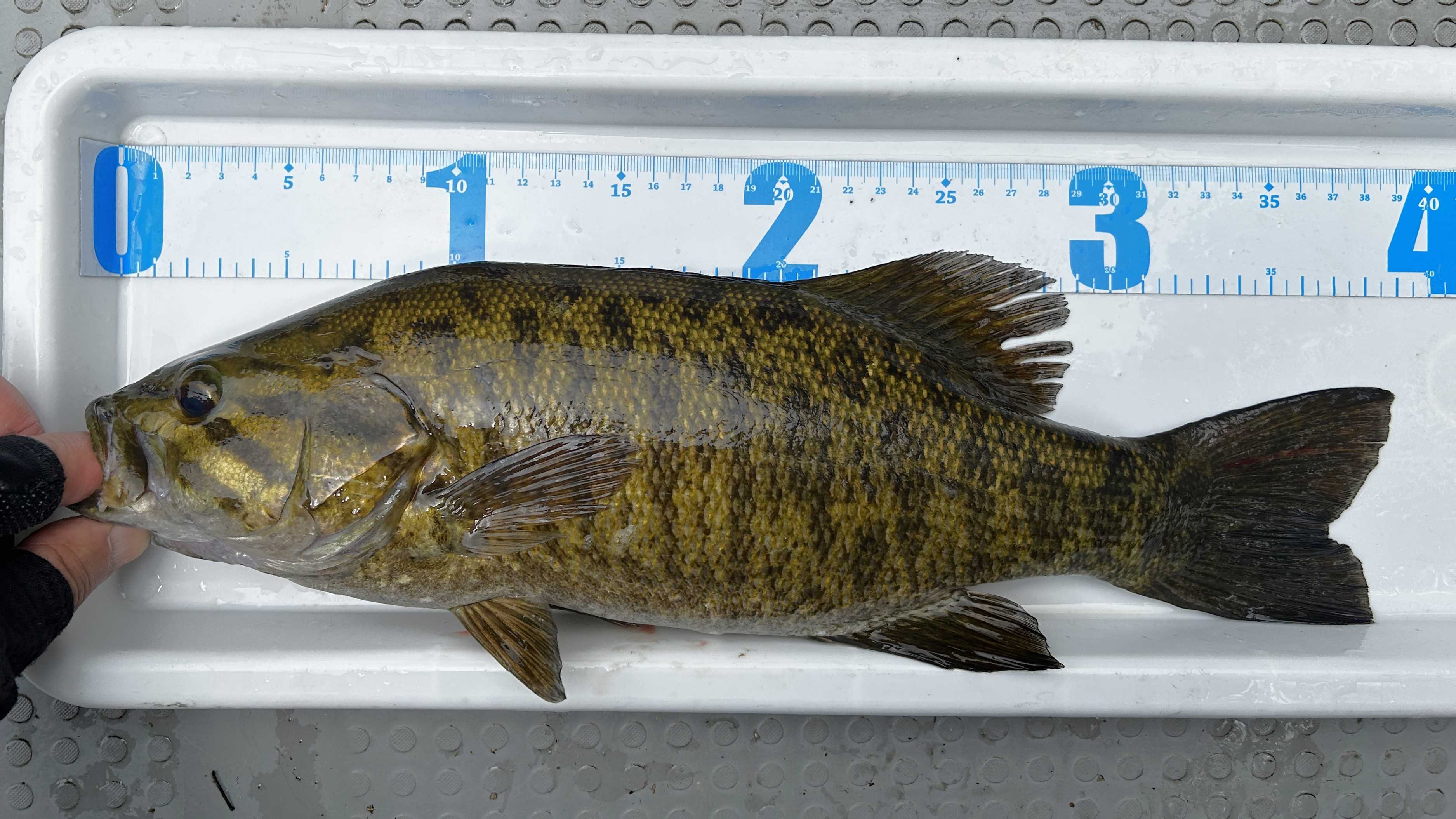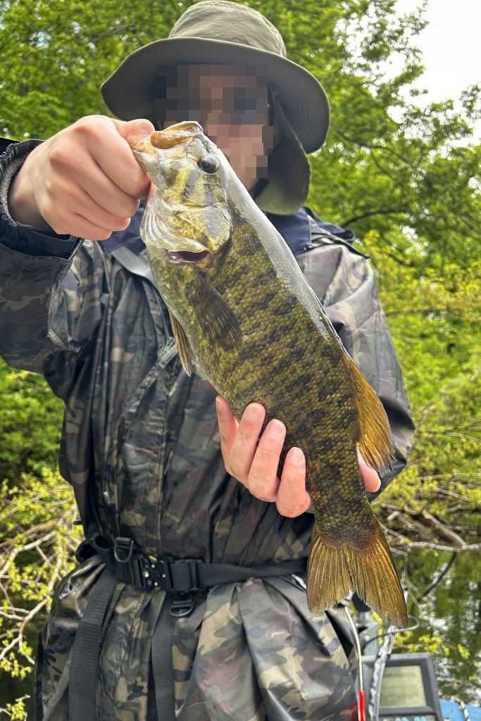 4匹目はスモールマウスバス、サイズは38cmでした。