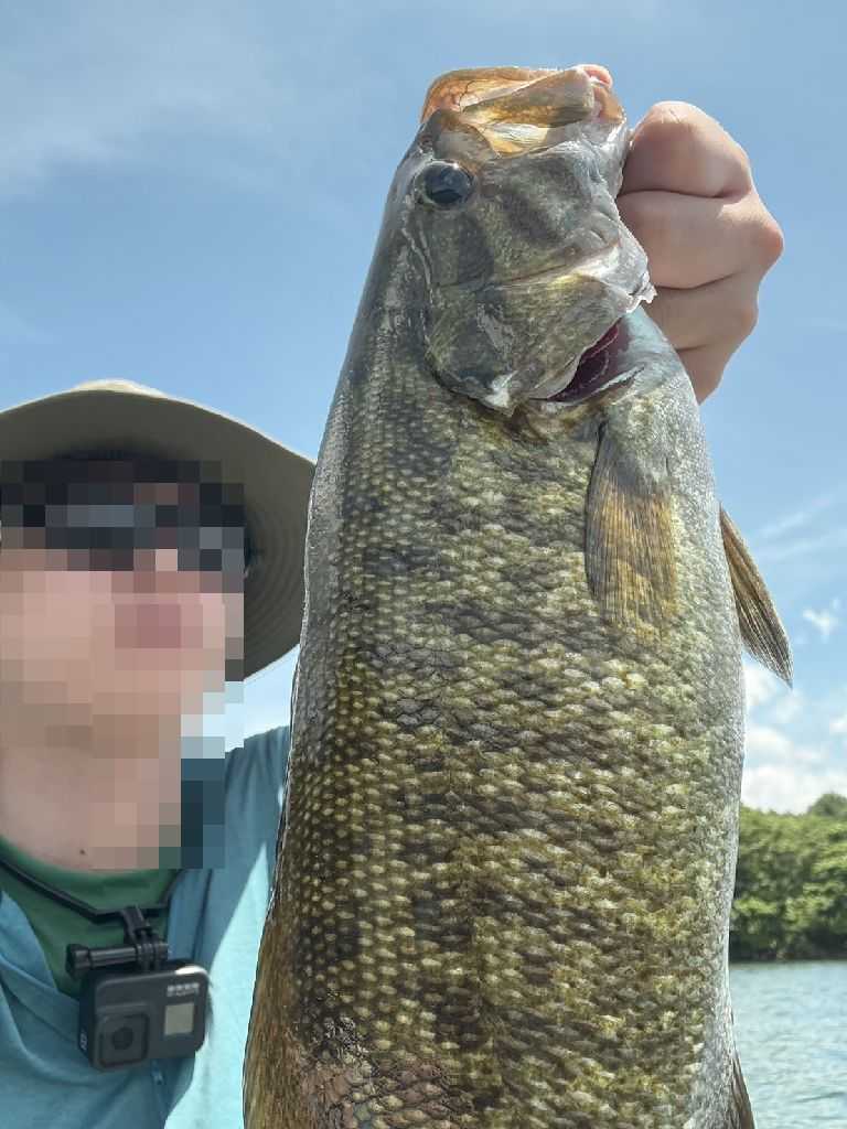 3匹目はスモールマウスバス、サイズは39cmでしょうか、いや40行ったかも。