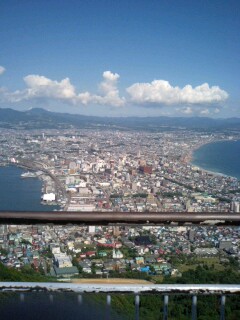 今日も、めちゃくちゃ暑い!!と、言うわけで、少しでも涼しくなりたいパパは、「高い所に行けば少しは気温下がるだろう」と、函館山の展望台へ行こうと言ってきました。うちの前で32度あった気温も函館山山頂では28度。・・・それでも28度です。(笑)天気が良かったので、見晴らしは最高です!お弁当屋さんで買ったお弁当を、ベンチで広げて食べました。 景色を堪能した後、おみやげ屋さんをぶらっと歩いていると、見つけて、思わず買っちゃいました。(笑)「紋別毛がにぃちゃんストラップ」一目惚れしちゃったんですふと、このところ白髪が気になってた私。以前、一緒に週一でバドミントンをしていたお友達が美容師さんなので、すんごい久々に電話して、白髪を染めてもらうことに。ついでに、みゆの前髪があまりにも失敗してかわいそうなことになってたので、そろえてもらうことにしました。久しぶりに会ったお友達は、お話しながらもテキパキとこなし、私の染め上がり待ち時間の間にみゆの髪をサササッと切ってくれました。おお~~~~。全然違いますっ。さすがプロっ。みゆも、切られている間おとなしくしてました。えらいえらい。代金は、私のカラー代金だけでよいとのこと。まぁ、素敵♪帰り、すぐ近くが海なので、夕焼けの海を見に行くことにしました。ああ、みゆは砂に夢中です・・・。ひえ~~~、ズボンがドロドロだ・・・。波が来るときに「ほら、ざぶ~ん、来たよ!逃げて!」と言ったりすると、結構面白がって波から逃げたり、向かっていったり。今日はいろんな所に行ったね。