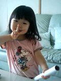 ママが持っていた包装紙の筒で遊んでいたみゆ。またいで、お馬さんごっこをしてました。 それを携帯で撮ったら、ピースしたついでに?NHK「おかあさんといっしょ」で歌われてる「かにダンス」を振り付けつきで歌い出しました。 このところ、歌と踊りが上手になってきたみゆ。親ばかな私は、将来がとっても楽しみなのです。(爆)そんなことをしていたら。すっかり忘れていました。パパが帰ってきて、「お金、間に合った?」と言われてハッと気づいた私。みゆのおたふく予防接種予約してたのにぃ~~~~~!慌てて、小児科へ電話したら、もはや留守電・・・。なんてこったい。すごく凹みました。お兄ちゃんとこのどうぶつ病院、午後からのパートさん募集してるんです。で、希望者の方から電話が来ると、面接の約束をするんですが、面接の時間が来ても、全然連絡もよこさず来ない人がいるんです。いわゆるドタキャンです。それも、かなりの人数っ。それを聞いた私は、「非常識だわ!」なんて怒ってたのですが、人のこと言えない・・・。明日、朝イチで小児科に謝りの電話しよう。ドジったママでした・・・。
