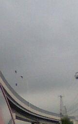 いいえ、人です。(笑)通勤途中に、浮かんでいる人たちを発見ビックリして、思わず携帯で撮っちゃいました。電線の工事かなんかみたいですね。怖くないんだろうか・・・。私なら、びびりまくりですよ~。