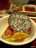今日はみゆの2歳の誕生日です!パパ方のおじいちゃん・おばあちゃんとともに、旭山動物園へ出発しました!!着いた動物園は、あっついのなんのって・・・。函館より北なはずなのに、なんでこんなに暑いんだ???去年はバテて寝たままのしろくまは、今年は元気に泳いでました。 この横では、ママも顔出してます。(笑)お金を入れずに、動かない犬の上でパチリ(笑)本当は、ゾウさんを楽しみに行ったのですが、去年いたところにいなかったので、売店の方に聞いてみると、お亡くなりになってたそうな・・・。残念っ暑さでバテバテな私たちは、動物園を後にし、旭川のジャスコへ行きました。おじいちゃん・おばあちゃんが、みゆに誕生日プレゼントを買ってくれるとのこと。さぁ、何を買ってもらおうかな?でも、服屋さんを見に行くと、かわいいのを見つけるたびに、「これいいんじゃない?」「これは?」と手当たり次第買おうとします。なんだかんだ、結局1万円以上は買ってもらったような気が・・・。(汗)たまにしか会えないから、余計なのかもしれませんね。恐縮です・・・。晩ご飯もここで食べ、みゆのバースディケーキも買いました。実家に着いたのは遅かったですが、みゆは元気だったので、ケーキを開けて、ハッピーバースディの歌を大合唱です みゆは大喜びな一日でした♪