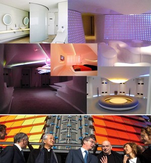ホテル・シルケン・プエルタ・デ・アメリカ(Hotel Silken Puerta de América) 2005年にできた、スペインのマドリッドに 「ホテル・プエルタ・アメリカ」というホテルがあります、当時世界で著名な建築家が13の異なる国々の18人を選び12フロアを異なる建築家がデザインを担当し、宿泊者が楽しめるように、この豪華な五つ星ホテルの、342の客室(各階30室)が出来ました。 それぞれ芸術や文化に基づく異なる眺望を表現するアイディアを生み出し発展させるため、自由な裁量を与えられ、 「夢見る場所」をテーマに、この多文化性を持つホテルは、芸術とデザインへのトリビュートを目的として作られたのです。 日本からは、10階を担当した磯崎新で、イメ-ジは繊細でリラックス感をあたえる日本的なテーマを強調した・・・と言われています。全体をフェリペサエス・デゴルドア(SGAエステュディオ)ハリエット・ボーン、ジョンサン・ベル庭園やホテルに隣接する公園などのランドスケーププロジェクトレストランは、クリスタン・リエーグルの設計。テレサ・サぺー氏は644台を収容の駐車場用サインのデザインエントランスロビーとレセプションルームはジョン・ポーソン ちなみに各階01st floor Zaha Hadid (ザハ・ハディド)02nd floor Norman Foster (ノーマン・フォスター)03rd floor David Chipperfield (デービッド・チッパーフィールド)04th floor Plasma (エバ・カストロ、ホガー・ケーン)05th floor Victorio & Lucchino (ビトリオ&ルチノ)06th floor Marc Newson (マーク・ニューソン)07th floor Ron Arad (ロン・アラッド)08th floor Kathlyn Findlay (キャスリン・フィンドレー)09th floor Richard Gluckman (リチャード・グルックマン)10th floor Arata Isozaki (磯崎新氏) 11th floor < Mariscal& Salas (ハビエル・マリスカル、フェルナンド・サラス)12th floorと正面 Jean Nouvel (ジャン・ヌーベル) 日本でも同様の事例 「IL PALAZZO」
