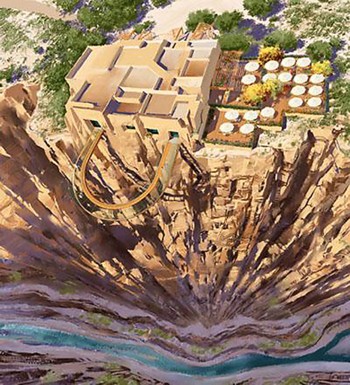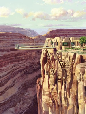 先日、3/9のweblogで書いた記事のグランドキャニオンの展望橋ができたようです。 マズは、完成予想図以下も資料と同じ写真ですから、迫力を見たければ資料を見て下さい・・ インデイアンの家もみえます・・・ 掃除も大変ご苦労さんです・・・ 足元が雲海?足場が組めないから、手前で組みそれを、前方に押し出し施工したのでしょう・・・いずれにしても足元がおぼつかなく、今後のメンテが大切だし、これも大変・・・しかし入場料が約\3.000-とは高い・・・それだけの価値があるのでしょう、落ちたときの保険も込み?・・・・