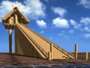 出雲大社も巨大建築の一つであったようです・・・資料 以前、大林組がCGとかで復元しておりました、古代から人は高い所から見渡すことが好きであったしもちろん、出雲大社ならば神を向かえるため、宿る施設としての位置付けであったのでしょう。 いまでも、新築された庁舎なんかでは何故か展望フロア-を設け市民のサ-ビスとかの名目で公開していますが、これも?です赤字なのに何故ここまでやるのか?勿論、対外的に必要なのは分かりますが・・・神は宿りませんが「お上」は宿っています。 何時ごろから、こういった展望フロア-なるものが出来始めたのでしょうか? 天守閣に原点があるのかな~?・・・・安土城の復元 そういえば、建築家安藤忠雄氏が設計した大阪府の「近つ飛鳥博物館」もよく観れば出雲大社のイメ-ジににているような~(こらは私の独断と偏見ですが) 人が山があれば、登るように、高い建物とか、木があれば登りたくなるのは本能なのでしょうか? 宇宙が最たるものでしょう・・・ 地下にもぐるのもそうなのかな?地下街?地下鉄? ・・・・・・・・・・・・・・・ 話は全然違いますが、あの建築家黒川紀章氏が東京都知事に立候補の予定でマニュフェストが提示されてました(資料)・・・読ませて頂いてこれは、多分、黒川氏の建築とか都市計画に対するライフワ-クのひとつである意味、集大成のような気がしました・・・・今後どのような選択をされるのか楽しみです。
