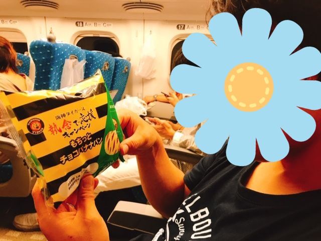 ■帰りは新幹線で、阪神タイガース「もちっとチョコバナナパン」を食べて帰りました。