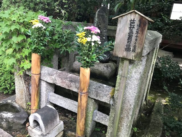 松尾芭蕉のお墓 。そのすぐ近くに、木曽義仲のお墓。