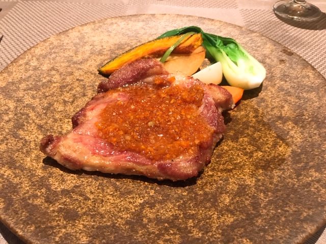 鹿児島の食材を使ったお品でした。豚肉おいしかったな〜。野菜と合わせて最後まで平らげました♪