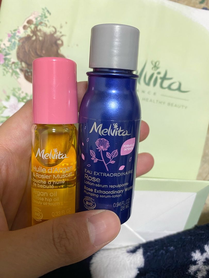 ↓プレゼントに Melvita の「 フラワーブーケフェイストナー 」と「 ビオオイル 」をいただきました