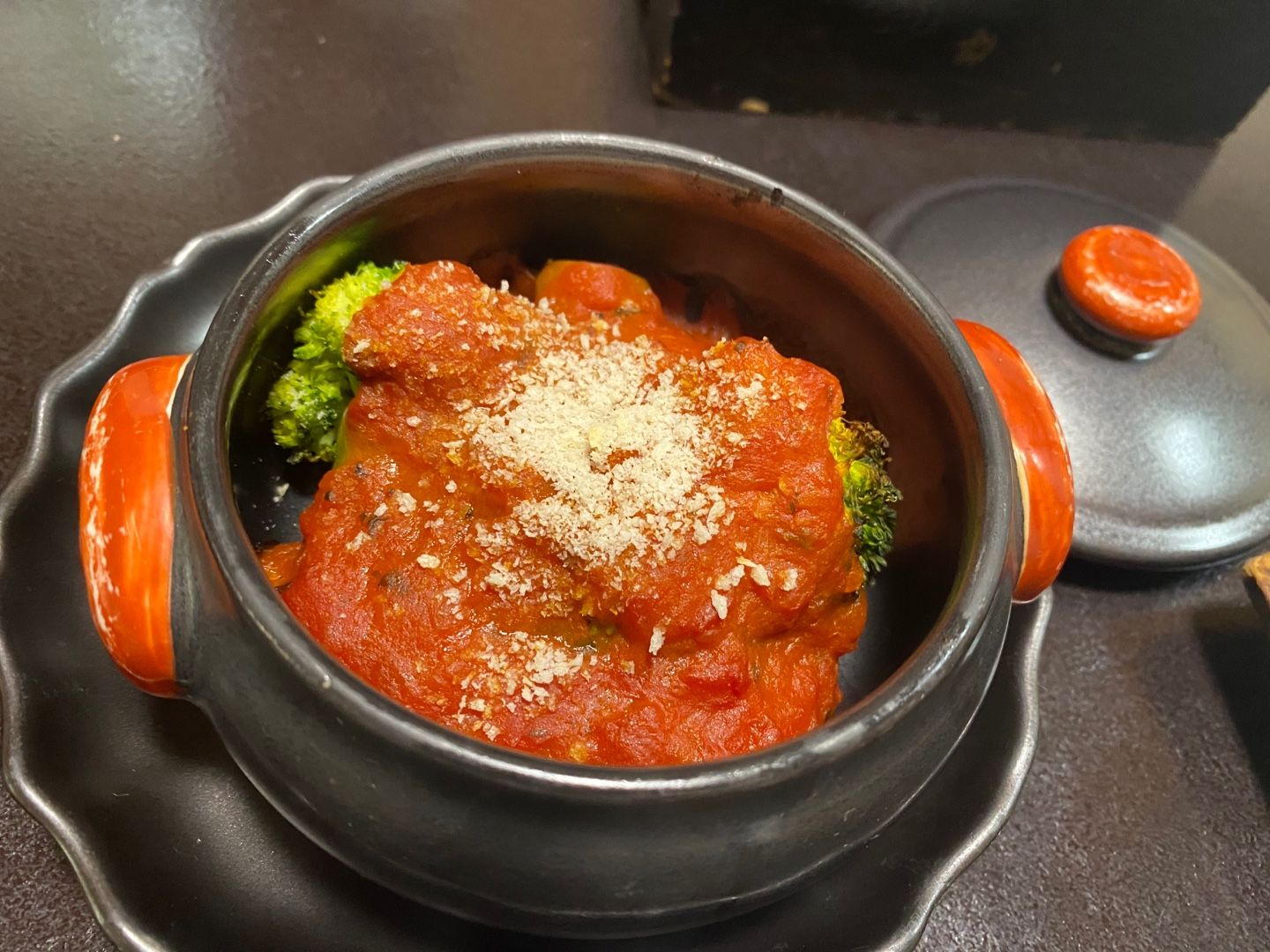 ▼妊婦用に、お刺身はトマトのグラタンに変えてくれてました♪美味しかった。