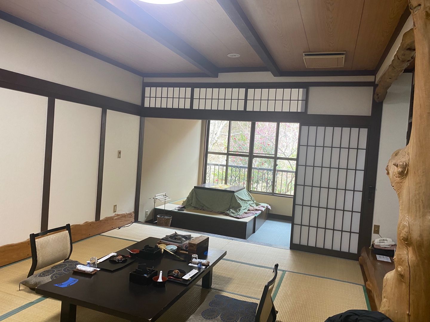 残りチェックアウトまでの時間は、先ほどの窓際にあったコタツエリアでお茶をすすりながらまったり。