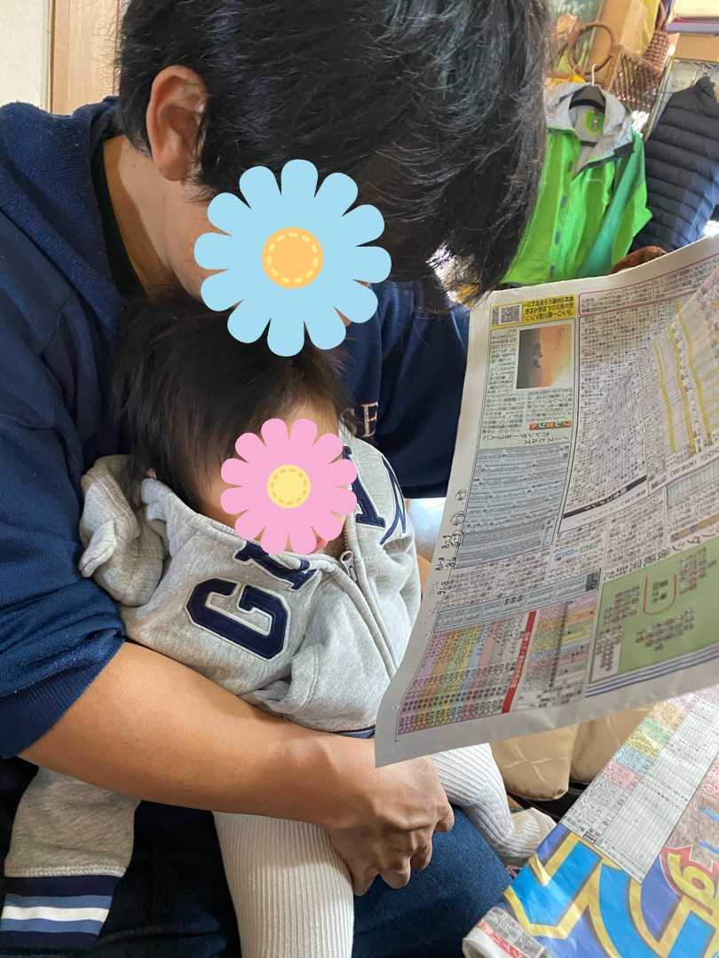 ↓かわいいコーデでパパと競馬新聞を読む姿(日曜日朝の様子)