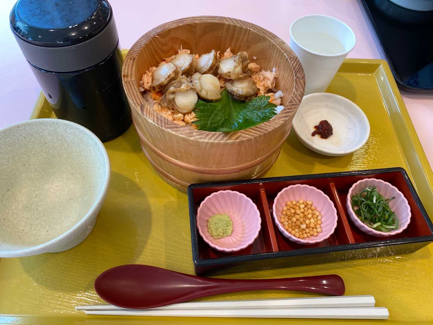 おひつごはん四六時中 昭島モリタウン店 」の ホタテとサーモンのバター醤油。