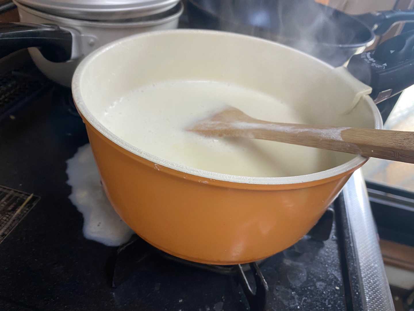 中火よりやや強めとの記載があったのですが、こぼれそうだったのでちょっと弱火でじっくりにしてみました。