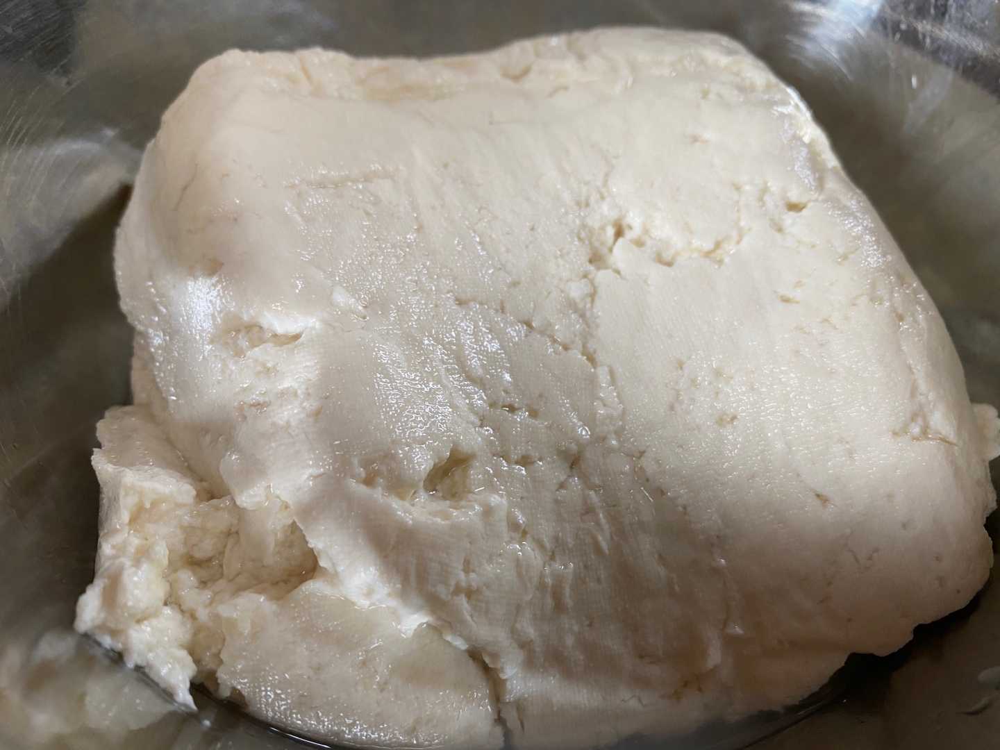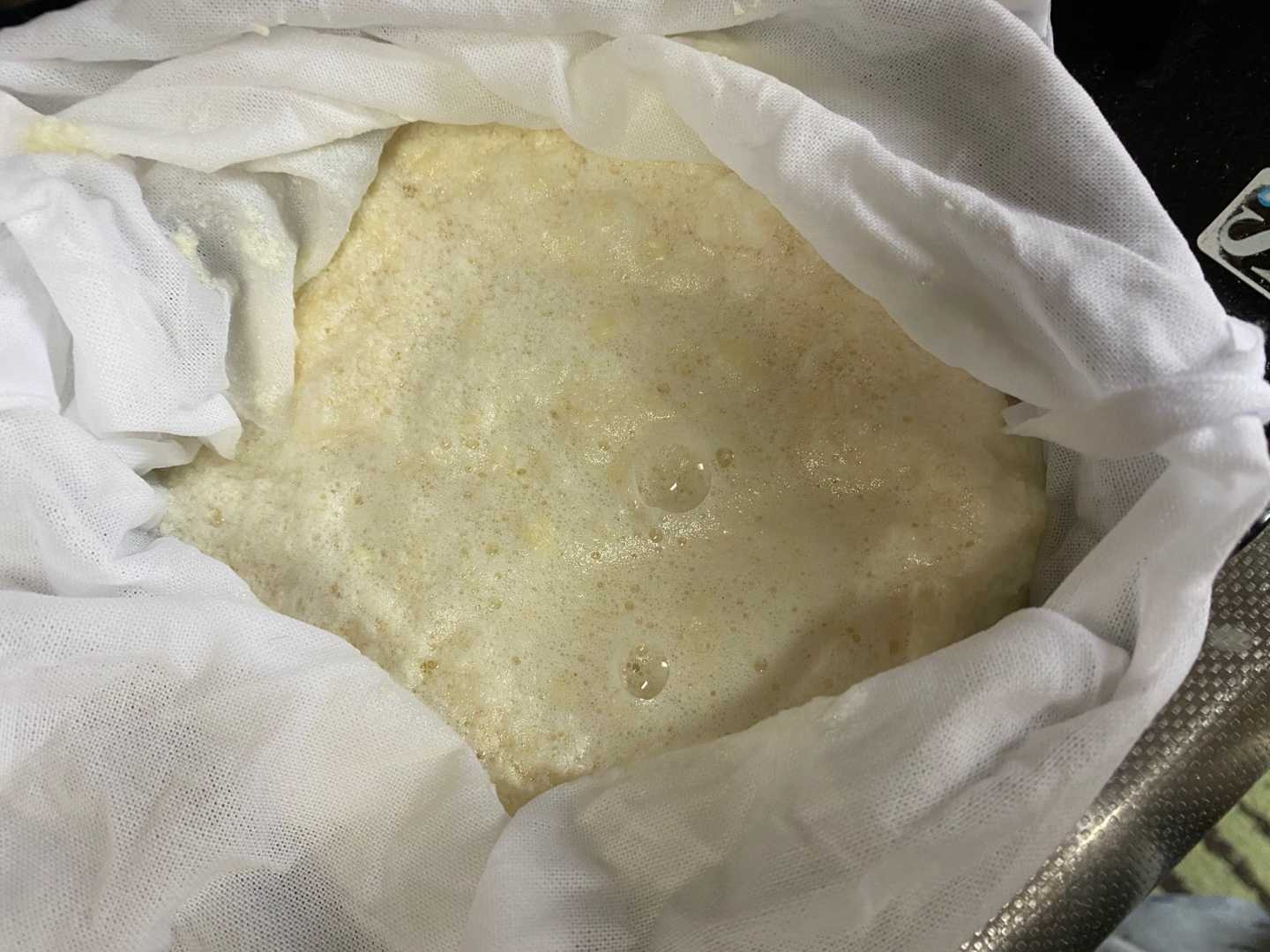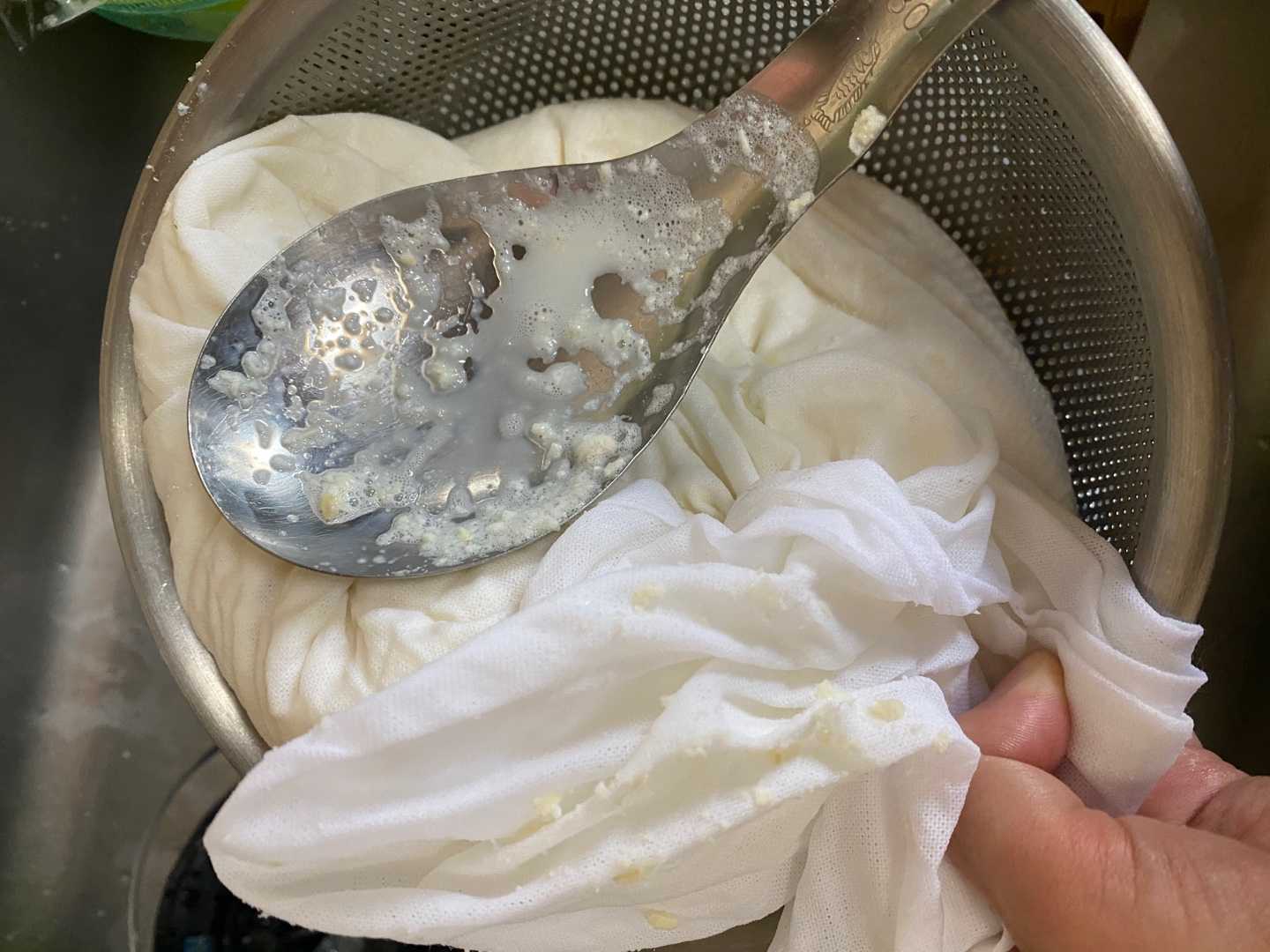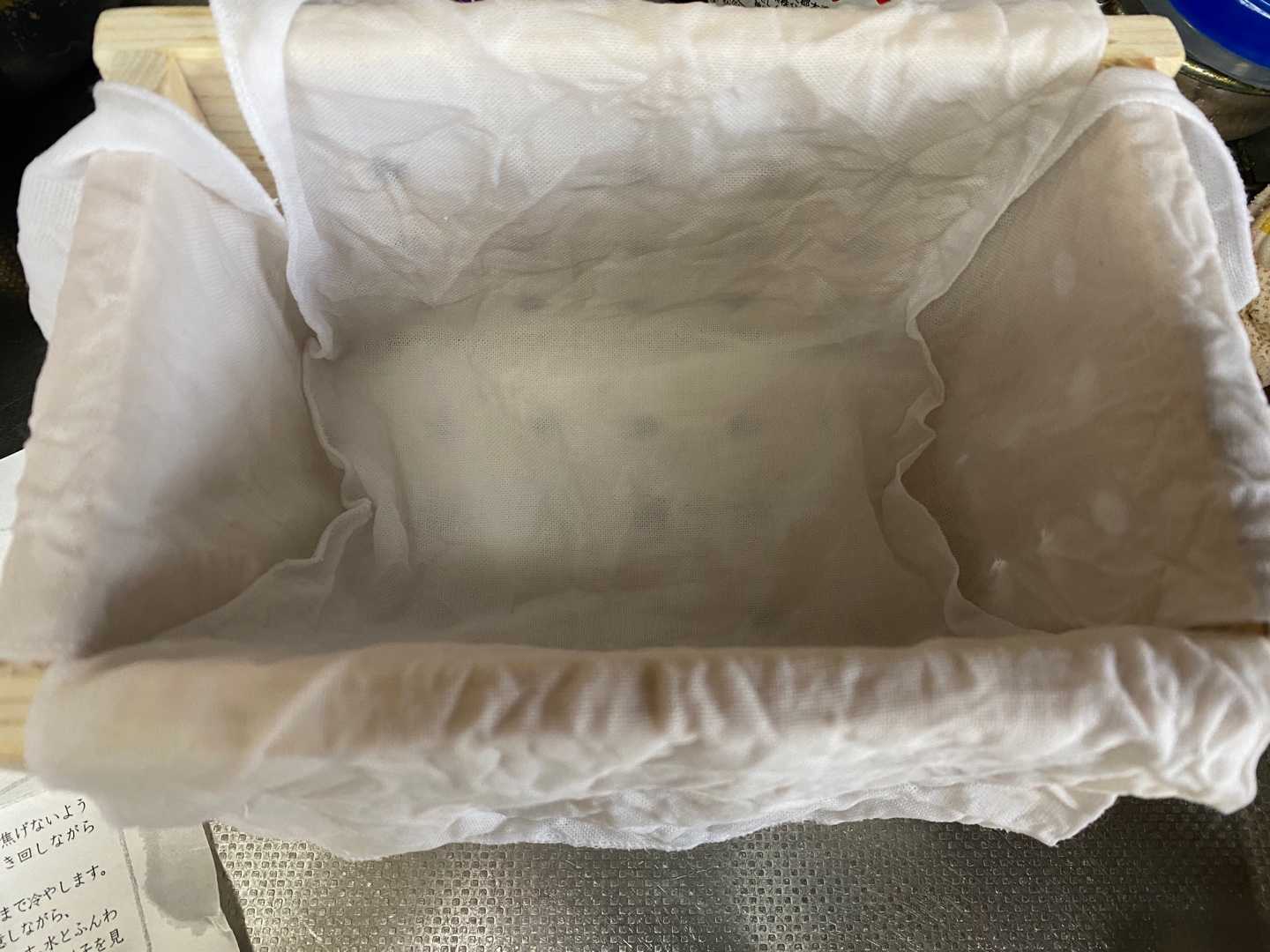袋の中に残るのは「おから」で、ボウルには豆腐が絞り出されました。