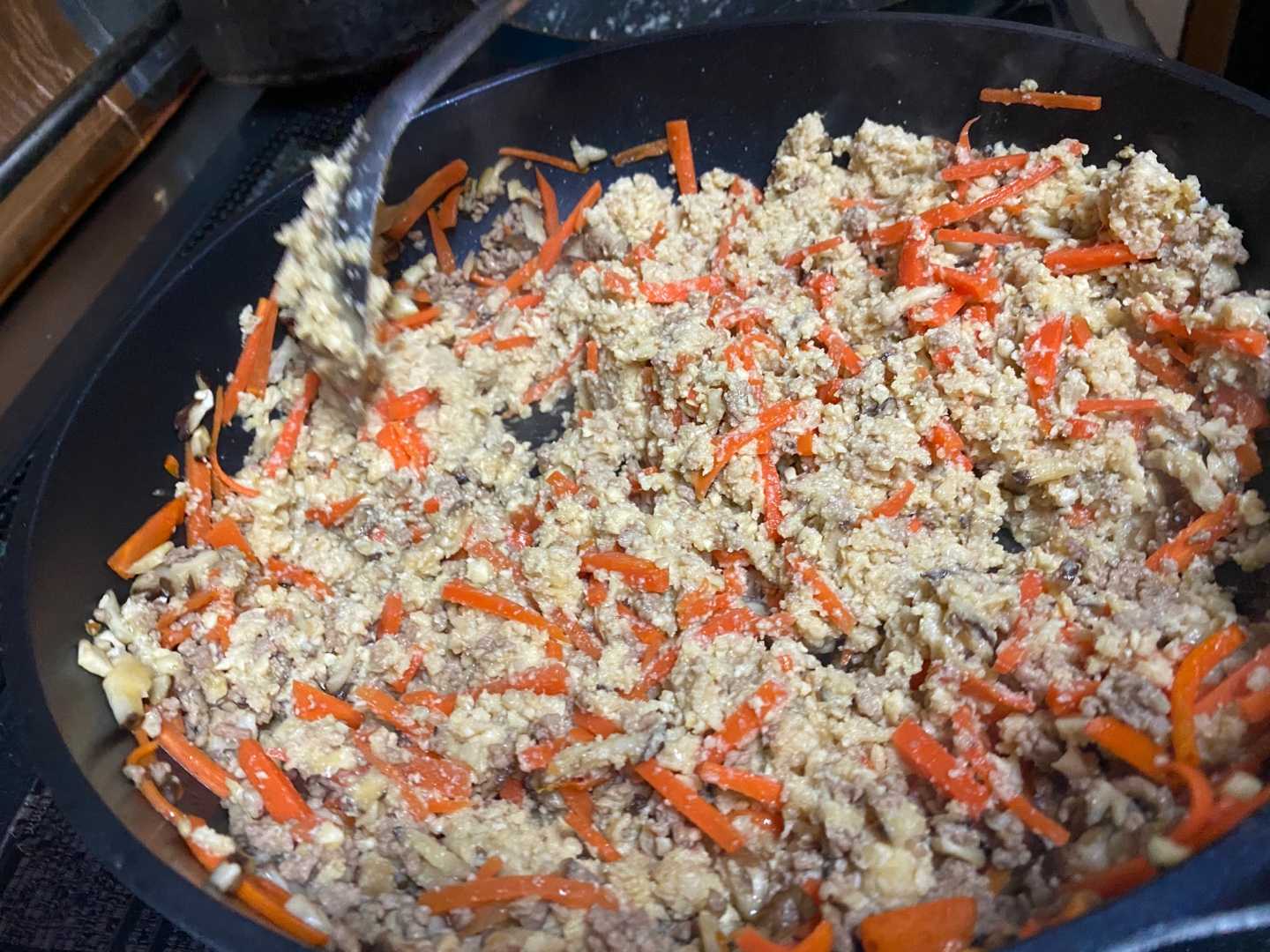 ↓ニンジン1本、しいたけ1パック、ひき肉200gくらいを加えて出来上がり!!