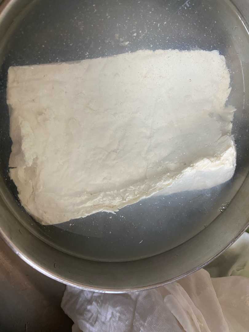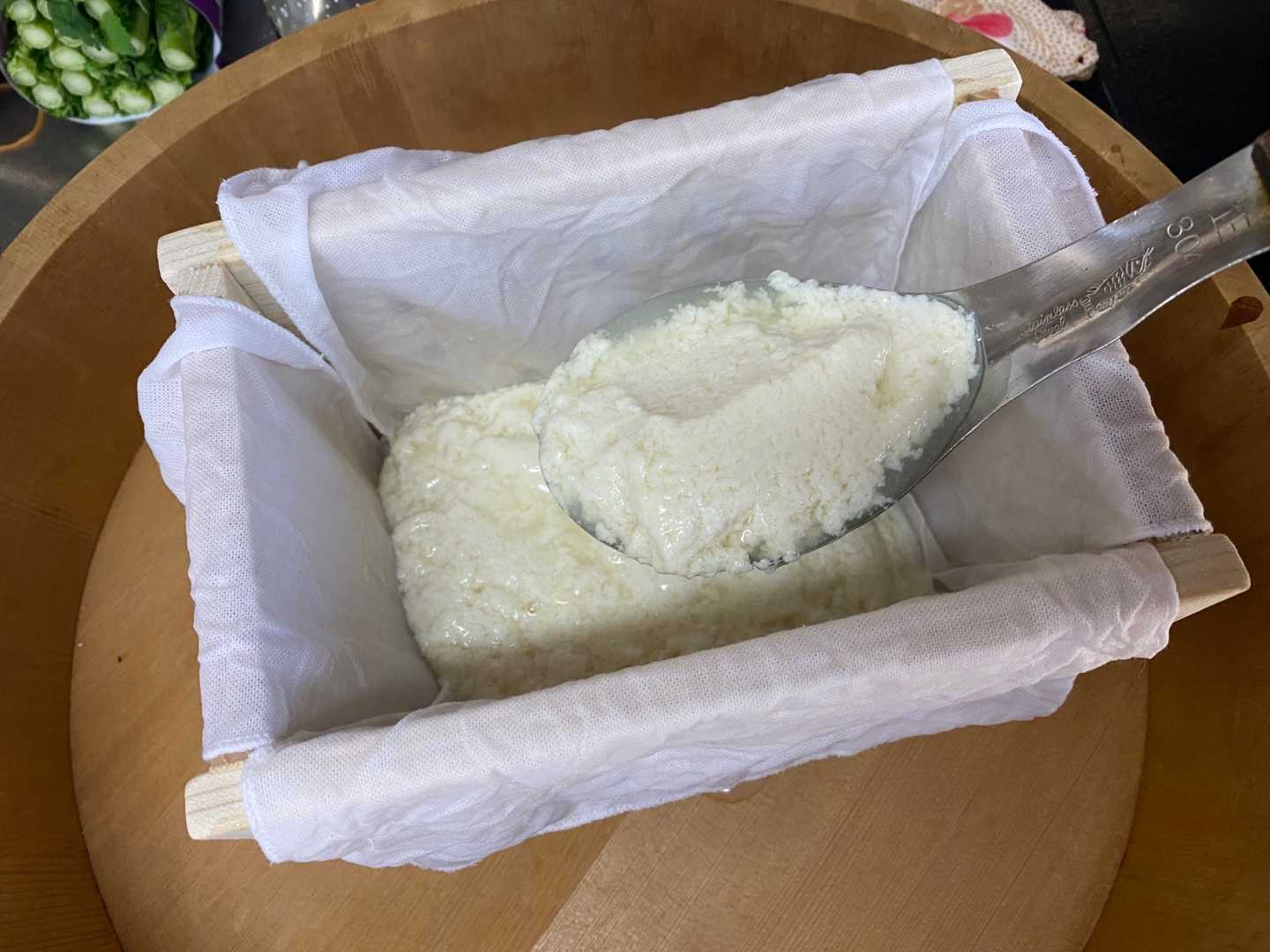 この重しが重くて時間をかければかけるほど、お豆腐が固く仕上がるようです。
