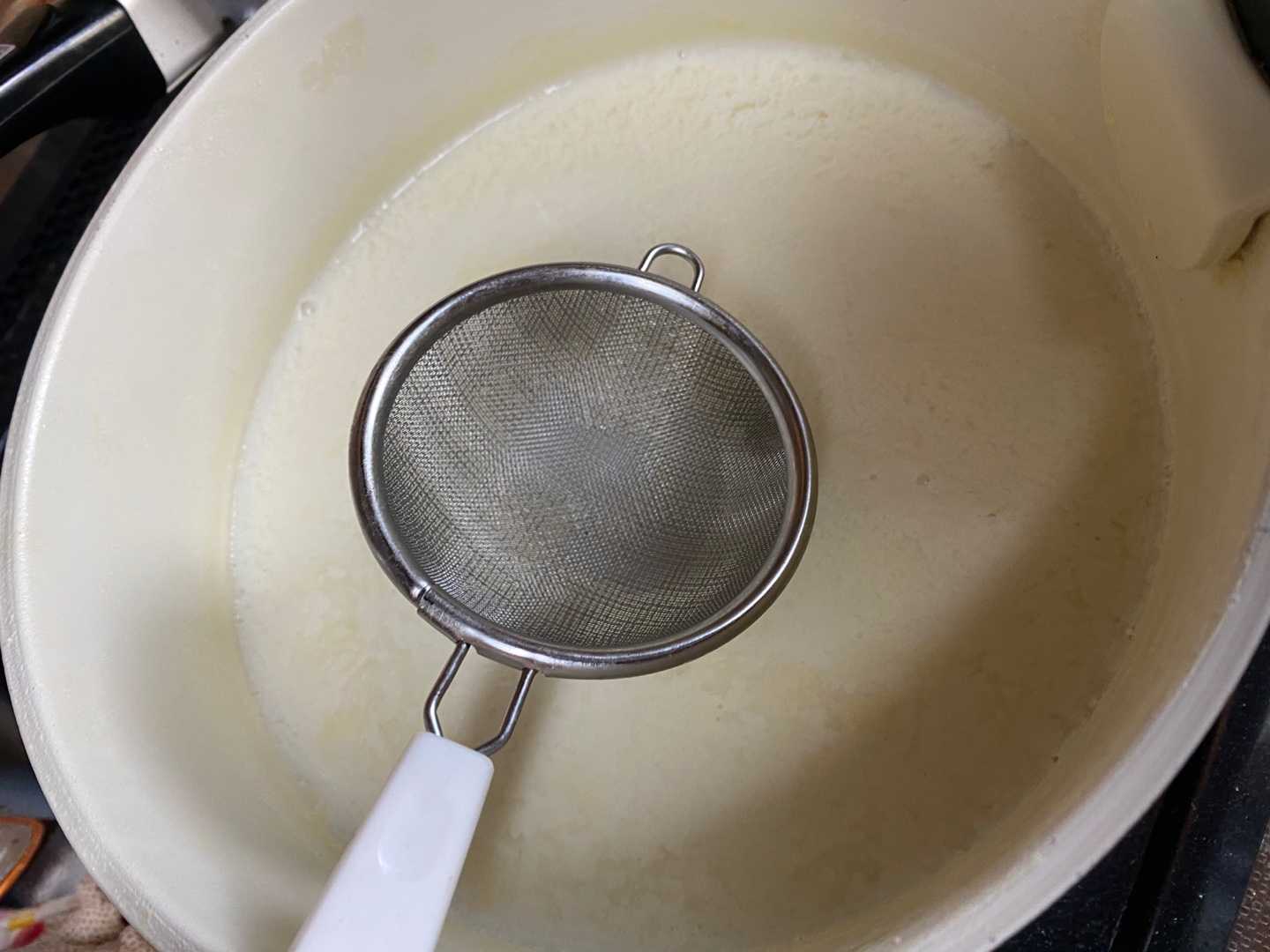 小さなざるで上澄み液をすくって取り除く、とありましたが、よくわからず