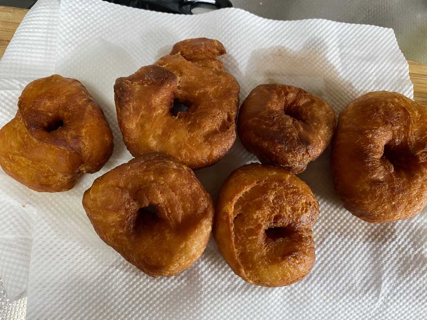 ↓前日仕込んでいた生地を6等分にしてドーナツ型にして揚げてみた!!!!