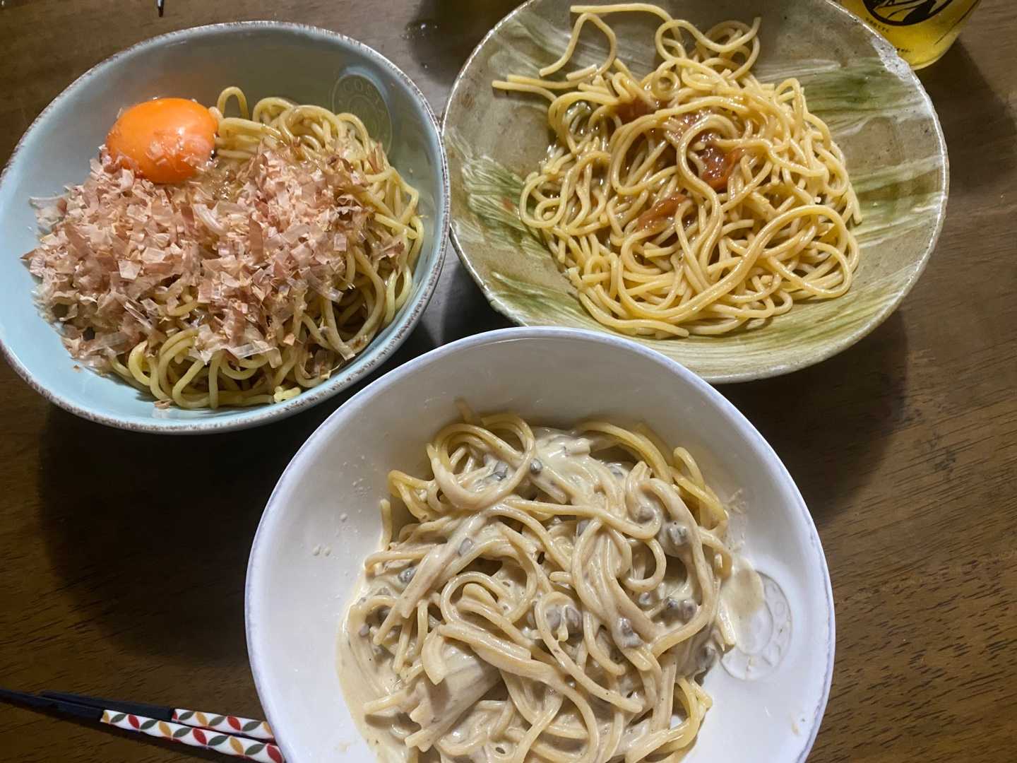 見た目はちょっとあれですが、3種類のパスタを作りました手書きハート