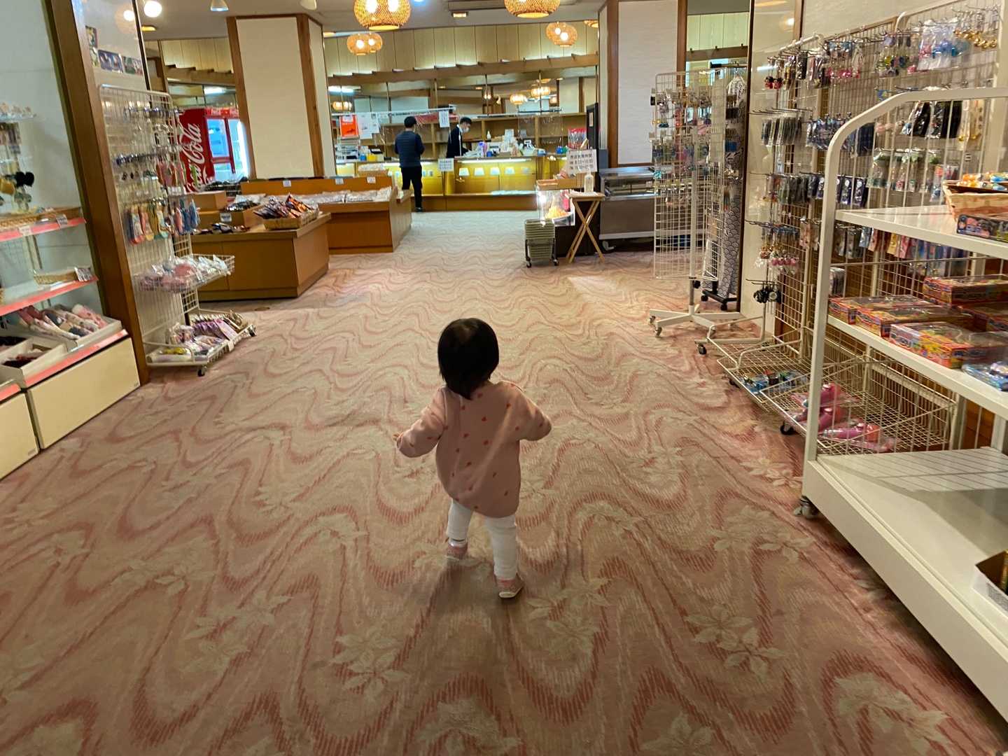↓売店などではしゃぐ娘 歩くのが本当に楽しいんだろうなあ。
