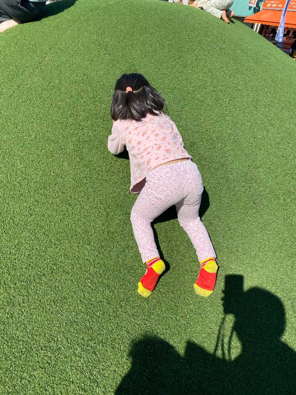 ↓芝生のお山ですごくはしゃいでました。最終的には裸足で駆け回っていました。