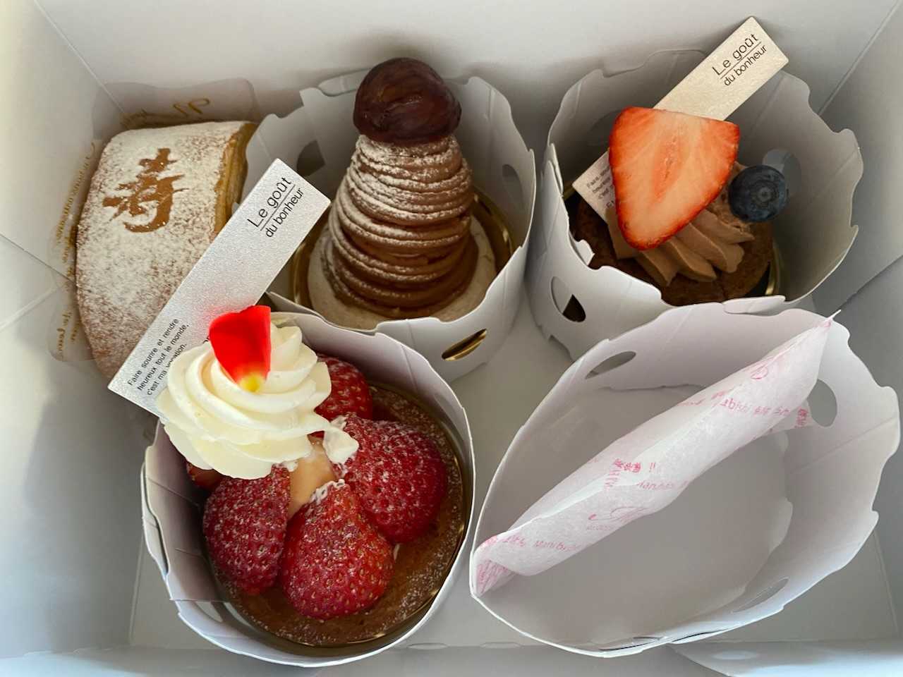 ▼モンブラン、フォンダンショコラ、苺のタルト、寿ロール。