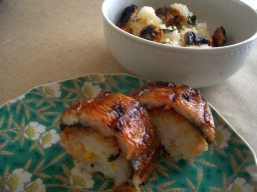 去年の 我が家には うなぎが登場しませんでしたぁ今年は の料理番組で見た うなぎの巻き寿司の登場~炒り卵と 青紫蘇を 入れました。残りの 酢めしには 刻んだうなぎを入れてみました。巻簾が行方不明だったので巻きがあまくて紫蘇も もっと入れれば 良かったなーでも おいしかったですなんたって 浜名湖の うなぎですから~産地 偽造じゃないよね