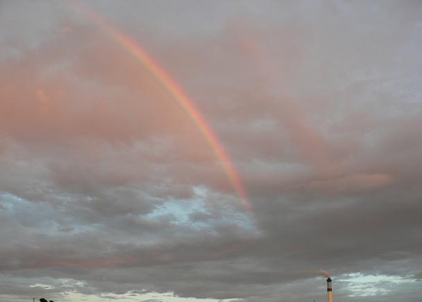 昨日の夕方「涼しくなってきたね」 「今年は 夏らしい日が少なかったねぇ」などと家人と話しながらお夕飯の支度をしていると窓越しに虹が・・・手を止めを手に東の空は きれいな夕焼けだったぁ夕方少し雨が降ったのかな。気付かなかったけれど