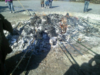飲んで、食って、しゃべって、時は過ぎて日が暮れてきます。時折吹く風はメチャ冷たいですが、そんなに風も強く無く、焚き火で暖をとります。焚き火中 posted by (C)carz自作のトライポッドも、Ver.1&2ダブルでやっと今回本格的に実戦投入です。日が暮れると星が綺麗!!星がキレイ posted by (C)carz夜が更けてくると、物凄く寒くなってきます。9時前には寒さに耐えかねて2名就寝。夜も更けてきます posted by (C)carzおいらも10時ごろには就寝です。☆☆☆☆☆☆☆☆☆☆☆☆☆☆☆☆☆☆☆☆☆☆☆☆☆☆☆☆☆☆☆☆☆☆☆☆☆さて、一夜明けて翌日。10時に寝てしまったので、朝5時ごろに目が覚めてしまいました。外は真っ暗!トイレに行ったりしながらも、テントの中でしばらくウダウダしたり、ちょっと寝たりしながら時間つぶし。何となく外が明るくなってきたな~という頃、ノコノコと起き出すと、外は昨晩より寒くない感じです。夜の最低気温は-3度弱だったようです。まもなく青カブさんも起床・・ってか、その前から起きてたようで、テントから出てきました。早速青カブさんが焚き火をしてくれたんで、ありがたくあたらせてもらいます。朝から焚き火 posted by (C)carz更に明るくなってきたんで、ちょっと周囲を散策。散策1 posted by (C)carz散策2 posted by (C)carz何者かの足跡が。。。散策3 posted by (C)carzいつの雪かは分かりませんが、がかなり残ってますね~。雪だるま posted by (C)carz前日の天気予報では晴れる予報だったんですが、なかなか雲が晴れず、日が出てこない。このままじゃあテントが乾かないよ~~~。晴れるのを期待して待ってたんだけど一向に晴れる気配なし!気温は上がらないけど風はあるので、テントの水気を雑巾で拭き、フライをめくって少しでも乾かします。まあ、なんとか乾いたかというところで撤収~。11時過ぎに出発です。道の駅でみなさんとお別れして帰宅。途中、温泉に寄ろうか、昼飯はどうするか考えながら走ります。考えが纏まらないまま、道志の湯、紅椿の湯、いやしの湯、コミュニティ青山、別所の湯、結局全部スルーしてしまいました。結局風呂には入らず、昼飯も局家の近くに来てからラーメン屋に入って帰宅です。