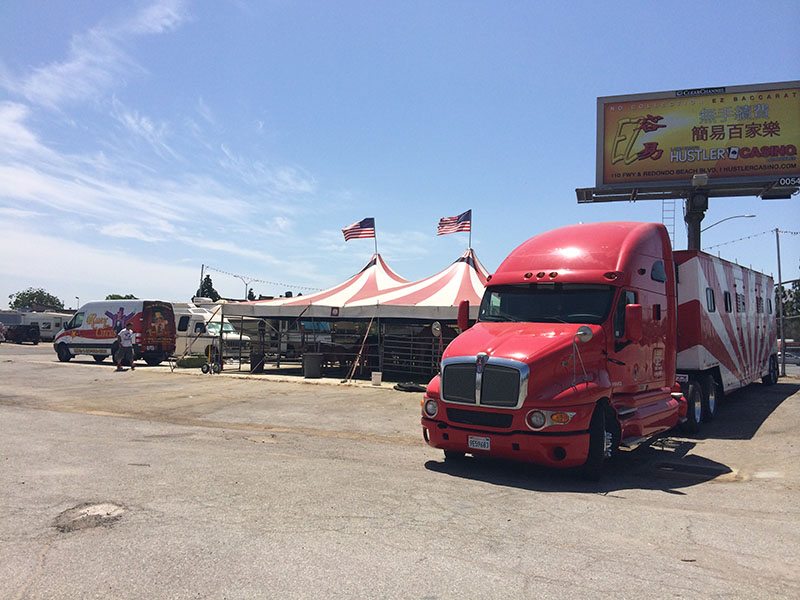 8月にLAに戻って以来、ずーっと思考が止まったようになっている。思考だけではなく、暑さ寒さも分からなくなっているのかも。。。先々週の土曜日、歯医者に行く途中に具合が悪くなって(暑さにのぼせて)ERに運ばれる。まぁ、40度も超えそうな炎天下の中、日傘ひとつで出かけて行ったんだもの無理ないか。ERの中の強烈なクーラーで体が一気に冷め、今度は風邪。母親の件での一報で日本に戻ったあの日から、早2ヶ月。明日、また日本に向かう。(最近撮った写真のデータ、ある切っ掛けで消えちゃいました。上の写真は、丁度2ヶ月前のあの日の朝、サーカス小屋の片付けを見ていたときのもの)