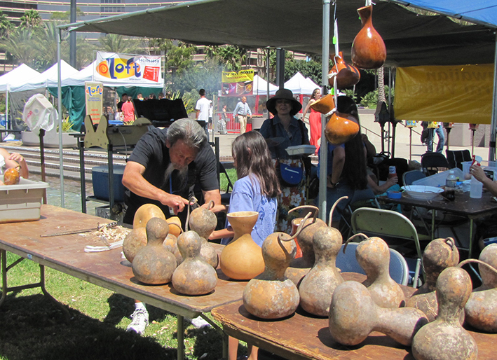 レイバーディのため久々の3連休。休み2日目は、LAから南へ1時間ほど行くLong beachを探検する事に決めていた。知らない土地へバスを乗り継いで行くのは結構大変で、こういう時に頼りになるiphoneも、今年からはプリペイドフォンに契約を変えてしまっていたので自分の手書き地図だけが頼り。ってか、バスを降りた途端に方角が分からなくなた自分にガッカリ。日陰の無い通りを5分も歩くと死んでしまいそうになる炎天下、2時間近く知らない土地をさまよい、なんとかクーラーのかかっている建物を見つけ、中の階段に座って涼んでいるといつの間にか、隣にアジア系のおじさんが立っていた。”暑いですねぇ”(英語)という挨拶から、しばしの会話になったが暑さで思考が鈍っていて会話も続かないし、しょうがないので、おじさんのかぶってた帽子を指差して“素敵な帽子ですね”と違う話しを振ってみたら、”あぁ、これはね、僕のおじいさんの会社のマークでナンチャラ、ナンチャラ。。。”あれ?この話し、前にも聞いた事がある!”んーと、前に一度お会いしてましたっけ?”と聞いても、おじさんはキョトーン。うわぁー、変な感覚。。。きつねだ、きつね。名前と住所を聞いておいて、家に帰ってから、昔の記憶を辿ってみる事に。。。じわじわと、思い出して来た3年前の記憶。それは、初めて行ったサンノゼで、ある仕事を通じて会った男性。その人だった。お話ししたのはその時以来だったけど、LAでもなく、サンフランシスコやサンノゼでもなく。。。どうしてLong beach...付近で。。。(写真は道に迷ってる途中に取った、ハワイアンフェスティバルでのひょうたんワークショップ)