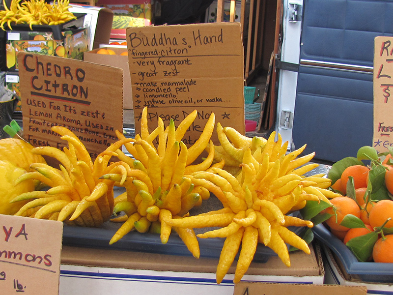 休日の朝、必ず一番最初にする事はコーヒーを飲みながら外に出て、レモンの木をじーっと眺める事。この間まで青々していたレモンの実がどんどん大きくなり綺麗な黄色に変わっている。枝の所々で黄色い光がふるふると風に揺れるのを見ながら久々に、ジャムでもを作ってみるかとレモンの木に手を伸ばす。1時間後、レモンジャム完成!レモン5つを丸ごと使ったジャムは小瓶にいれてもまだ黄金色に輝いて見える。せっかくなので、そのレモン汁とジャムを使ってクッキーも焼く事に。朝から飲んでいたコーヒーはいつのまにか紅茶に変わり、できたてのジャムの味を確かめながらこの夏は、他の果実の木も植えてみようかと、真剣に考えてみる休日。(写真は去年の冬にサンフランのファーマーズマーケットで売っていた、変わりレモン:Buddha's hand"仏陀の手")