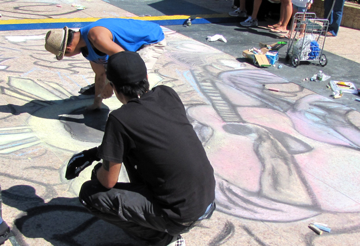 突然、行き先も告げずに旅に出てしまったルームメイト、もう1ヶ月くらい家を空けている。心配はしているが、たまーに電話に入って来るメッセージは短いながらもどこかで楽しく生活しているらしい。 まっ、いいか。最近、仕事の流れも変わり、会社の一人部屋で黙々と仕事を進めそのまま一人、まっすぐ家に戻ってくる事が多い。朝のシャワーの音も気にせず、部屋の掃除にも気を使わず、TVのボリュームを下げる事も無くなった今、まわりに人が居ない、という生活を続けるのもどうなんだろうと思い始めた。週末こそ出かけようと思うものの、去年の夏に買った愛車(自転車)も盗まれ、すっかり出不精となり、ついつい庭の前の雑草、草むしりに全力をそそぐ毎日。最近では野菜のタネを買って畑をつくる計画までしている。 い、いかん。最後に人と話したのはいつだっけ?そんな大げさな、と思いながら記憶を遡ると、、、笑えない。今週は、今週こそ、、、とイベント情報をみて行ってみたChalk Festival.そんなに驚くほどのイベントでもなかったけど、まぁ、気晴らしは出来たはず。でも、誰とも話す機会は無かったなぁ。。。子供達が集まって真剣に描いているって、なんだか微笑ましい。。。やっぱりね、ビートルズ。会場の側で遊んでいた子供達、可愛ぃー!!