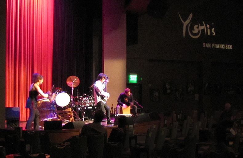 しばらくブログから離れているうちに、ブログのシステムが少し変わっていた。伝えたい事はたくさんあるのに、何かがうまくいかない。やりたい事もいっぱいなのに。-----------最近、偶然にもすばらしいライブに出くわした。天地人--東北出身の3人。リーダーは元オフコースのドラマー、大間ジローさん。知り合いが仕切っていたライブで、前宣伝も何もなし。天地人の3人も、ワシントンの帰りに寄ってくれたサンフランシスコっていう事だったのでなんとも少人数の観客、アットホームな感じで始まった。それが、あまりにもパワフルなステージだったのでビックリ!演奏している3人が乗りのりなのが伝わる。サンフランシスコのブルーノートと呼ばれるYoshi'sでの演奏。オーナーのヨシさんがあまりの力強い天地人のステージに驚き次のステージのオファーをしていた。なんだか、凄いものを見てしまったような気がする。