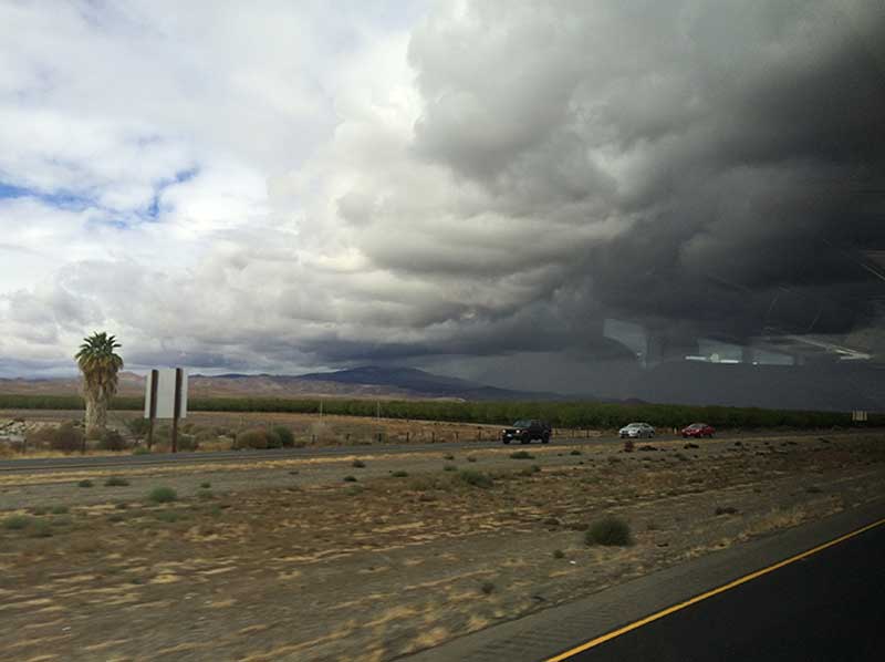 最近、暗い感じの写真が続くが、別に鬱状態で生活しているわけじゃない。実家から帰って次の日には、シゴトモと会社の近くの"Walnut Tree Festival" に出かけて行って、持ちきれないほどの食材、アクセサリー、アンティークものを買いあさっていたし、ハロウィンには、金髪のカツラにピンクのロングまつ毛を付けて、大ハッスルだった。ここにきて、西海岸の狂った暑さも終わりとなり、雨雲のどんよりした天気が続いている。今月は2度、サンフランシスコにバスで行く。(しかも、日帰り!)私用で、どうしても引けない用事があったのだ。片道7時間の往復で、14時間!別に、飛行機で行ってもいいんだけど、夏の間にお金を使い果たしちゃったのと、何となく夏の騒々しさを納めたくて、バスでゆっくり行きたかったし。出掛けのLAが曇りなら、サンフランも曇り。写真はバスが雨雲に突入して行く瞬間。(窓に映った車内の映り込みが、ちと惜しい)Radioから聞こえてきたDream On (Areosmith)…こりゃー利くな。消しとこう。