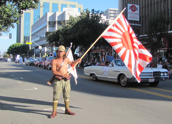 8月11日、リトル東京で”二世ウイーク” と呼ばれるお祭りがあるとやらで、行ってみた。これは実際、七夕まつりだそうで、屋台が並び、青森で有名なねぶたが見られるとのグーグル調べ。行きましょう、行きましょう。4時くらいまで時間をつぶし、さて、人ごみの中へ。。。”えっ、今年はねぶたは無いんですか。。。” ーーーーーーーまっ、まぁ、いいじゃないですか。パレードをおとなしく見ましょうよ。うん?。。。パレードのそばにひときわ目立つ人物が。。。ATSUMI AKAMINE 日系三世。ニッポン、ダイスキデス。ワタシ、3サイノトキ、イチドニホンへイキマシタ。メディアの人達が取り囲み、撮影合戦。二世ウイーク、七夕まつりに戦闘服を身にまとい、アメリカと日本の国旗を振るATSUMI氏。何とも複雑な気持ちのまま帰宅とする。