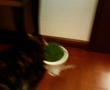 お花屋さんの前を通ったら、「猫草」があったのでゲットしました。