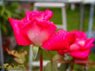 赤いバラと白いクロッカス・サルスベリ・クレマチスで、紅白のおめでたい庭になってます。