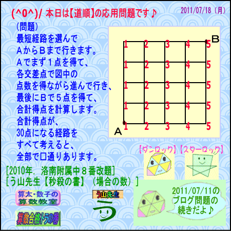 洛南附属中の[場合の数・道順]の問題その2です☆