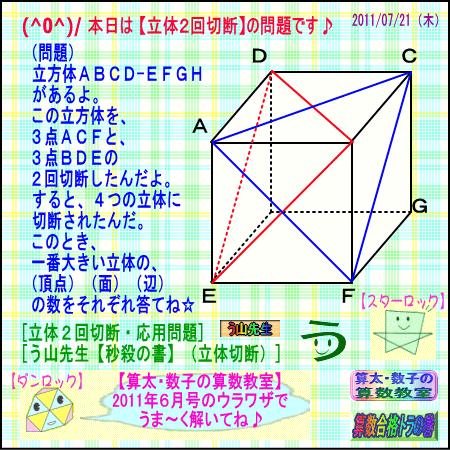 (^0^)/ 本日は 【立体2回切断】の問題です♪
