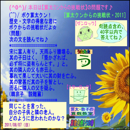 【算太・数子の算数教室】(R)の楽天ブログです☆ [算数合格トラの巻]も見てね!^^