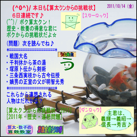 (^0^)/ 本日も【算太クンからの挑戦状】6日連続です♪