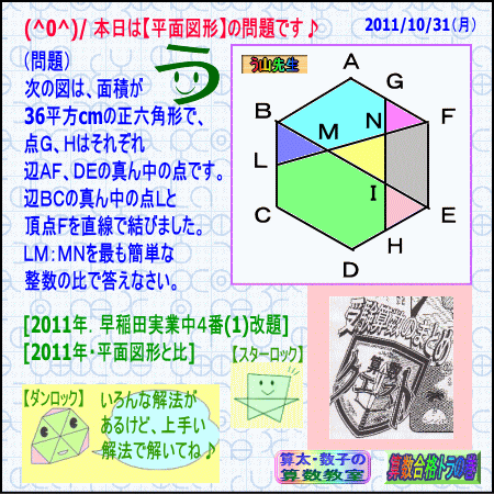 早稲田実業中の[正六角形の平面図形]の問題です☆