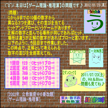 (^0^)/ 本日は【ゲーム理論・推理算】の問題です♪