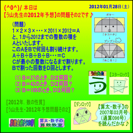 【う山先生の2012年予想】の問題その1は、